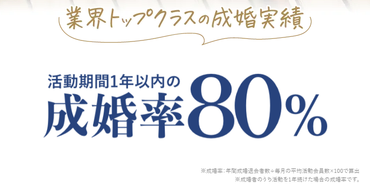 - 成婚者全体のうち活動1年以内の成婚率が80%!