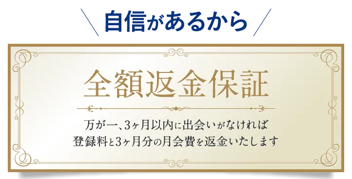 エン婚活エージェントは、3ヶ月以内に出会いがない場合は、登録料と3ヶ月分の月会費を返金してくれます。