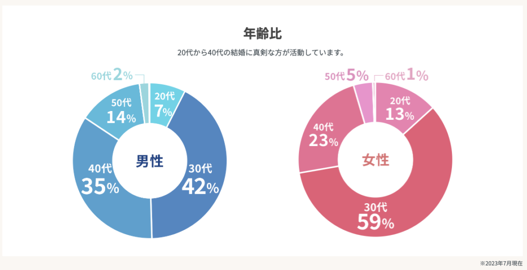 年齢層やその割合は、他の大手結婚相談所と比較しても大差はありません。引用:エン婚活エージェント