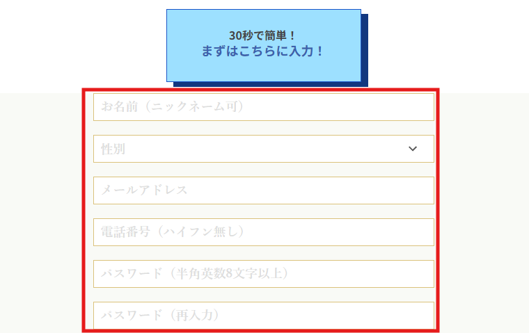公式サイトの「ご入会はこちら」より、氏名や住所などの基本情報を入力します。