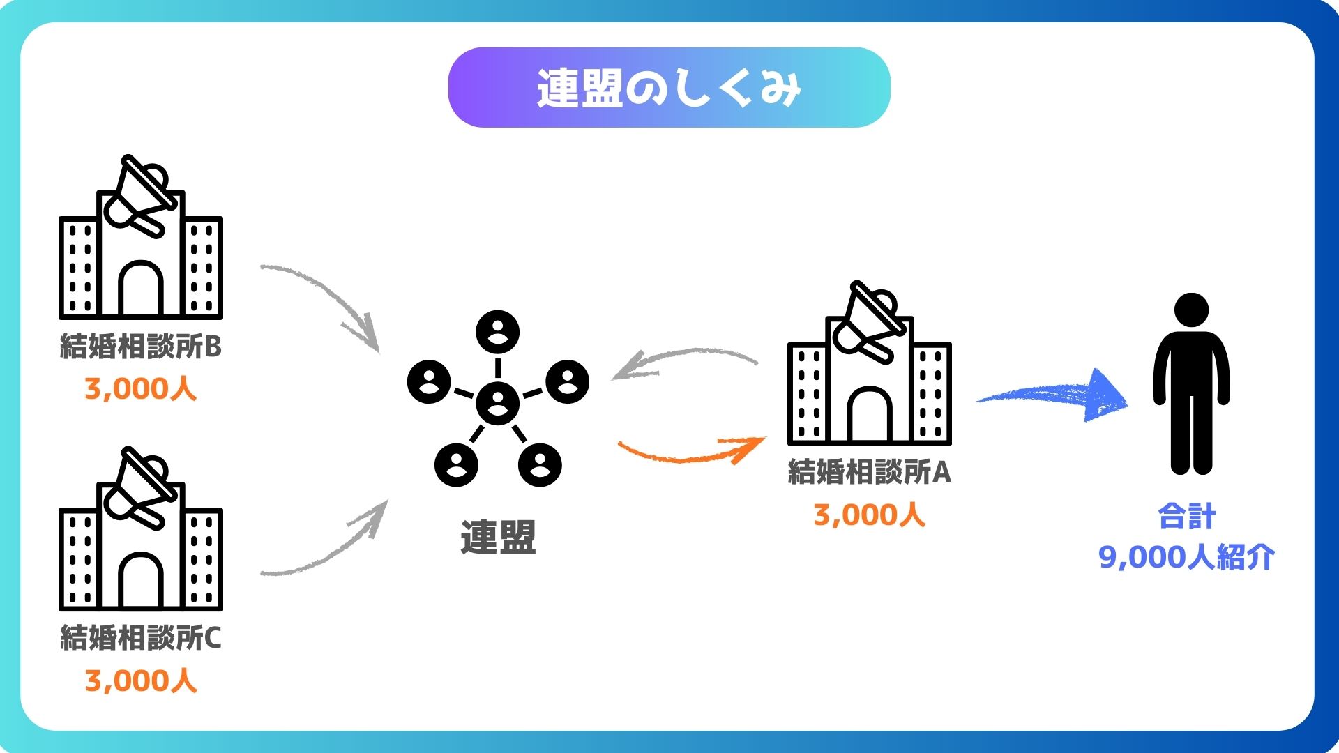 結婚相談所は、各社任意の「連盟」に加入しており、連盟の会員同士でお見合いが行われます。